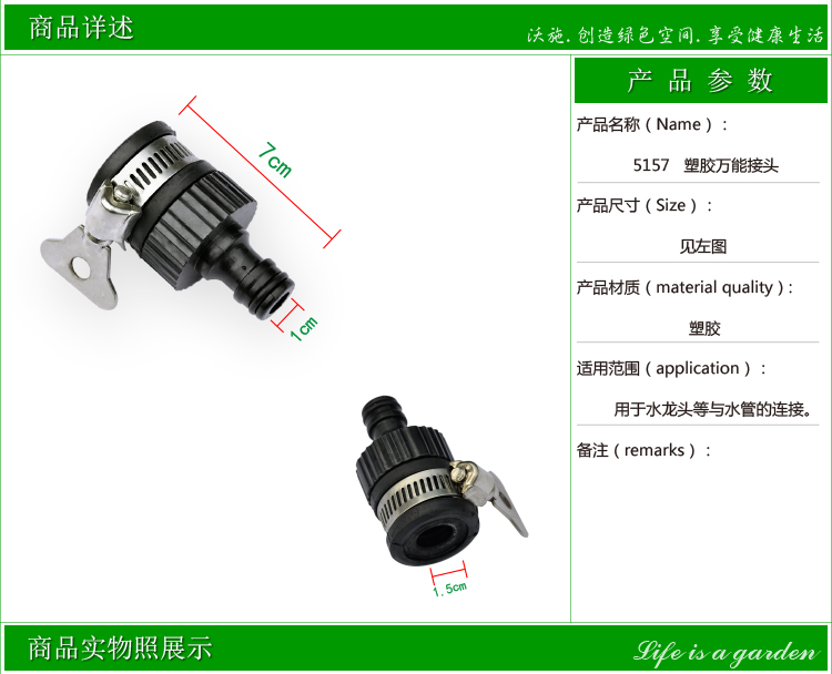 本品需另配相应的龙头接头,推荐万能接头5157,如不清楚可先咨询客服