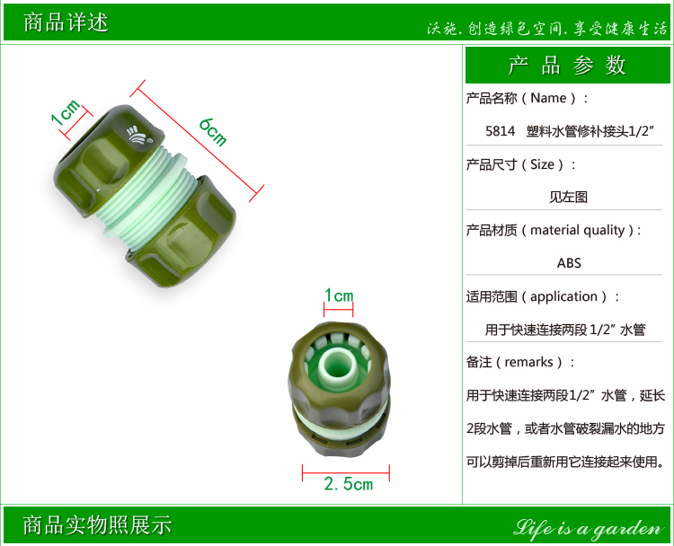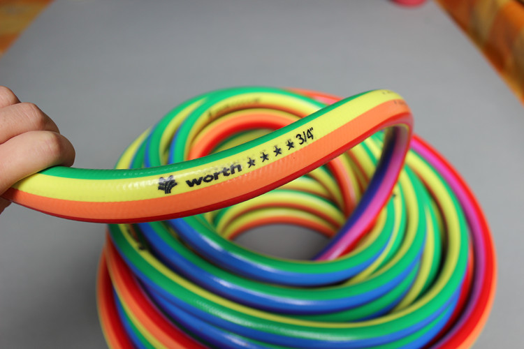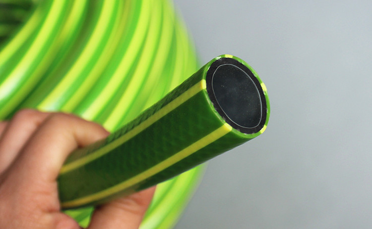 描述:此款水管为5分管,对应5/8英寸(水管直径16.6cm),抗爆压力50公斤以上,剥离强度6N,邵氏硬度60度,适合南北的天气,冬天不容易硬,夏天又达到抗爆压力,适合家庭花园和工地上使用