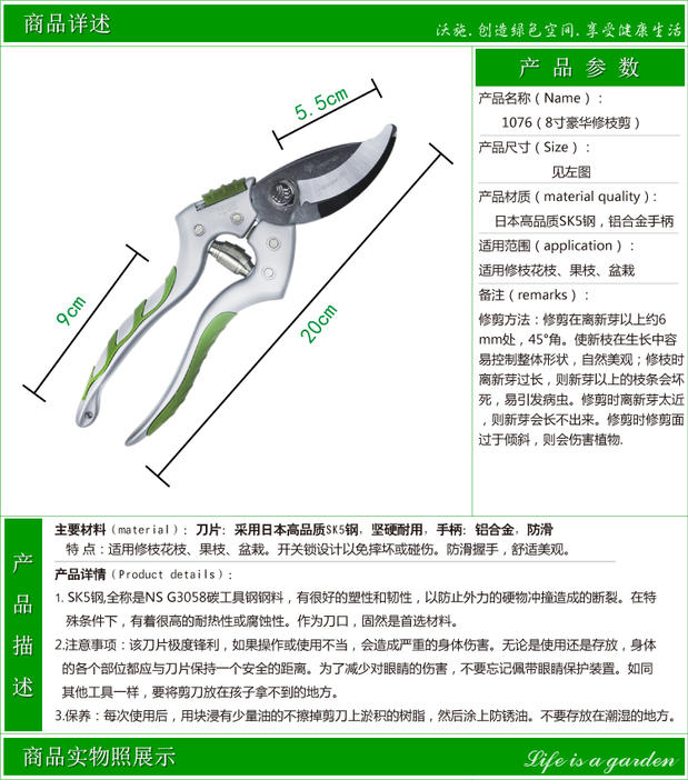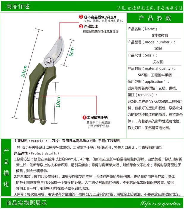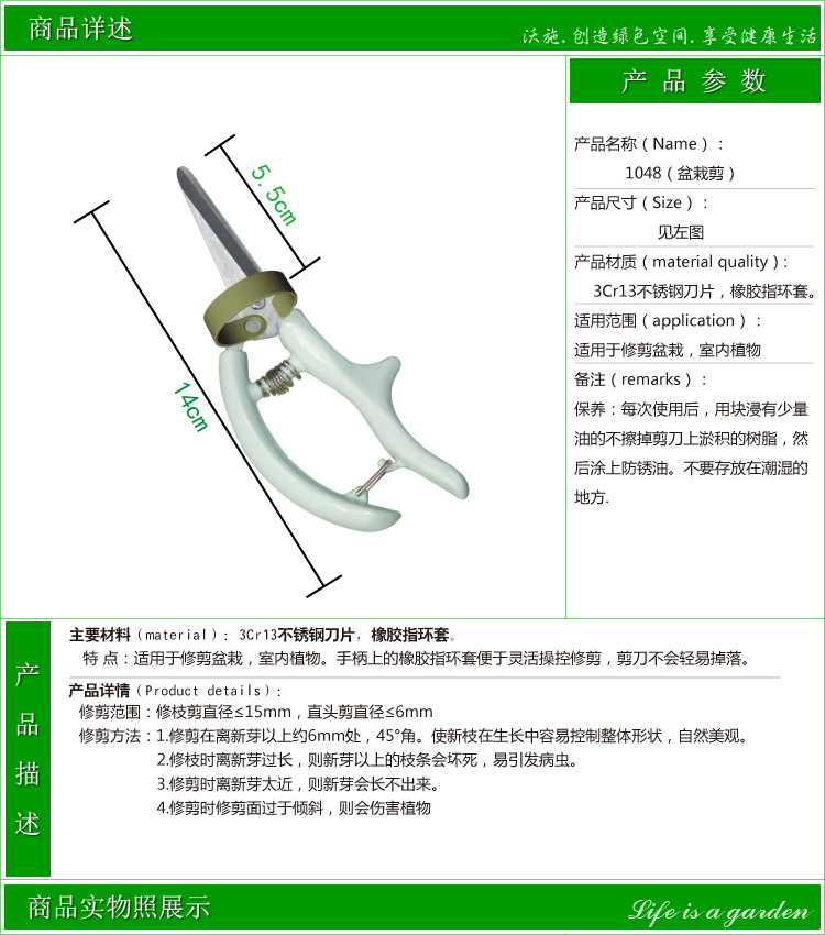 适用范围:使用修剪花枝、果枝、盆栽等花草