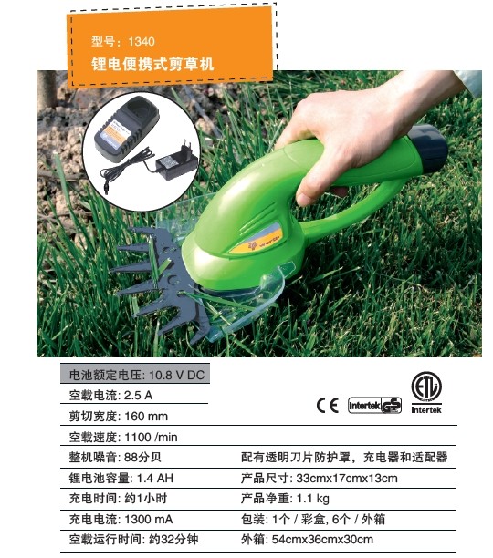 适用范围:花园草坪的修剪(刀头可旋转180度)